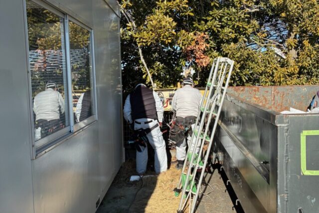 担当者のコメント これから半年にかけて行われる改修工事の現場事務所架設工事をしてまいりました!改修工