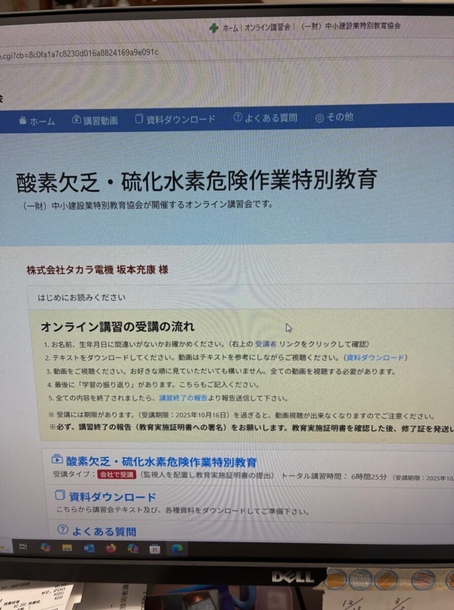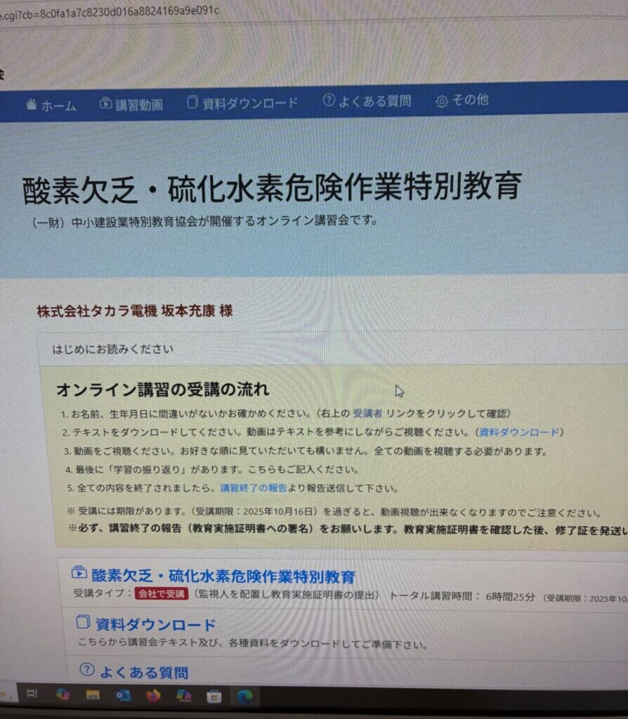 現場への危機管理といたしまして、Webにて酸素欠乏の講習を受けました。