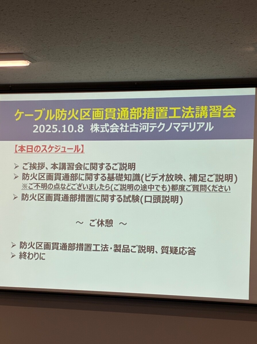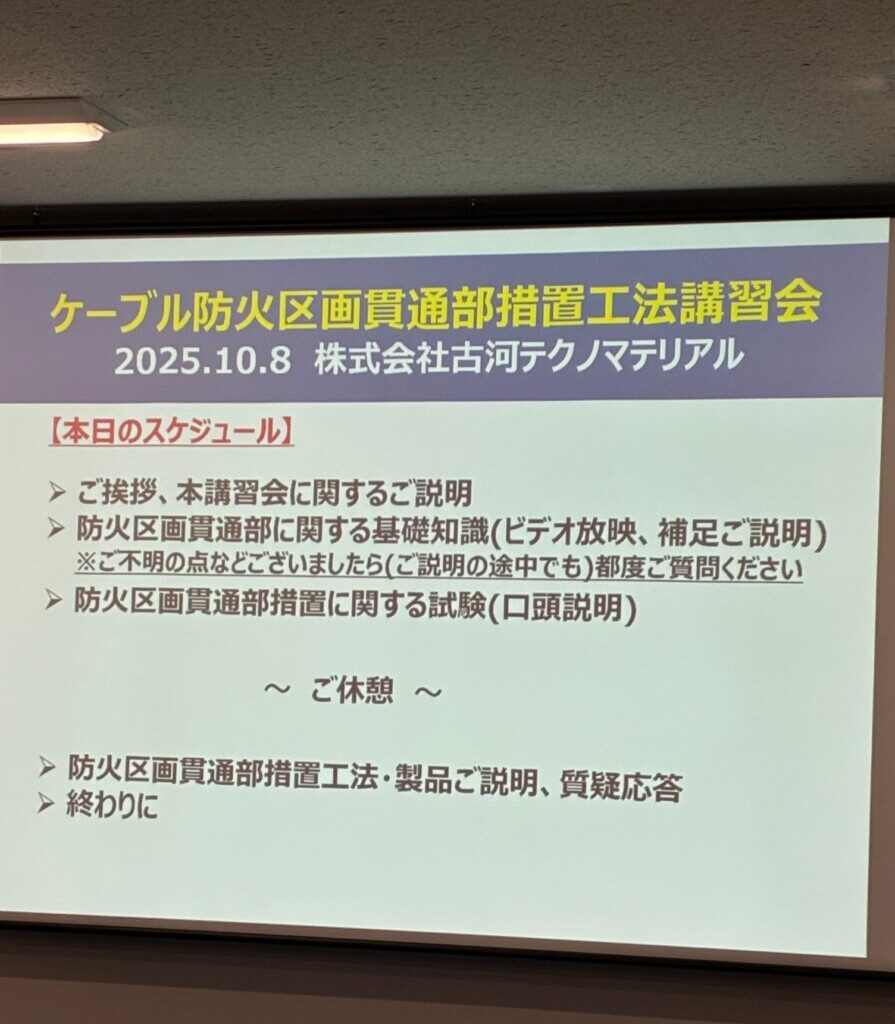 ケーブル防火区画貫通措置に関する講習会に参加!区画処理の新しい知識を得ました。