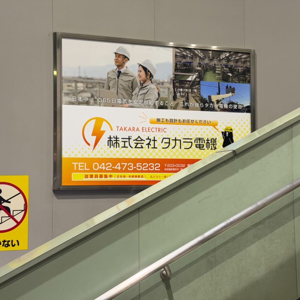 東久留米駅に弊社タカラ電機の看板を設置してもらいました!!是非1度見てみてください!また、随時社員募集もしております。興味のある方はご連絡を!!